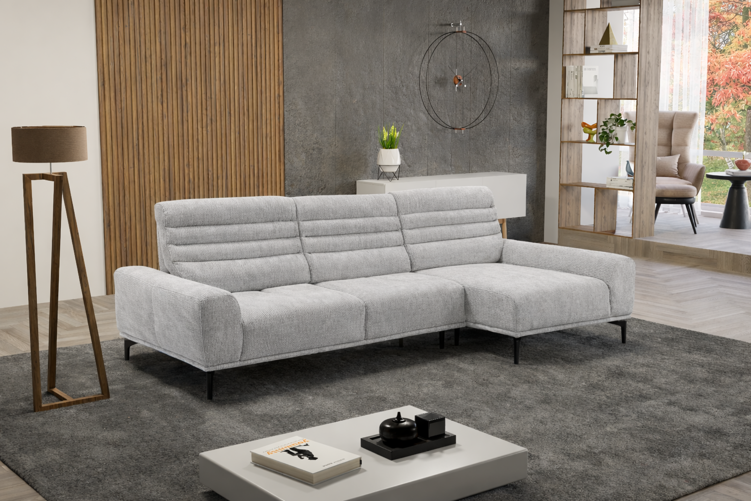 דגם ״אלודי״ תוצרת איטליה מבית המותג האיטלקי Calia Maddalena .ספה תלת מושבית עם שזלונג בעיצוב קומפורט קלאסי,בעל משענת גב גבוהה מתכווננת אחורה וקדימה לכיוון עומק המושב. המשענת המעניקה תמיכה מלאה לגב ולראש ומשענת יד מרופדת לנוחות מקסימלית בישיבה ובשכיבה.