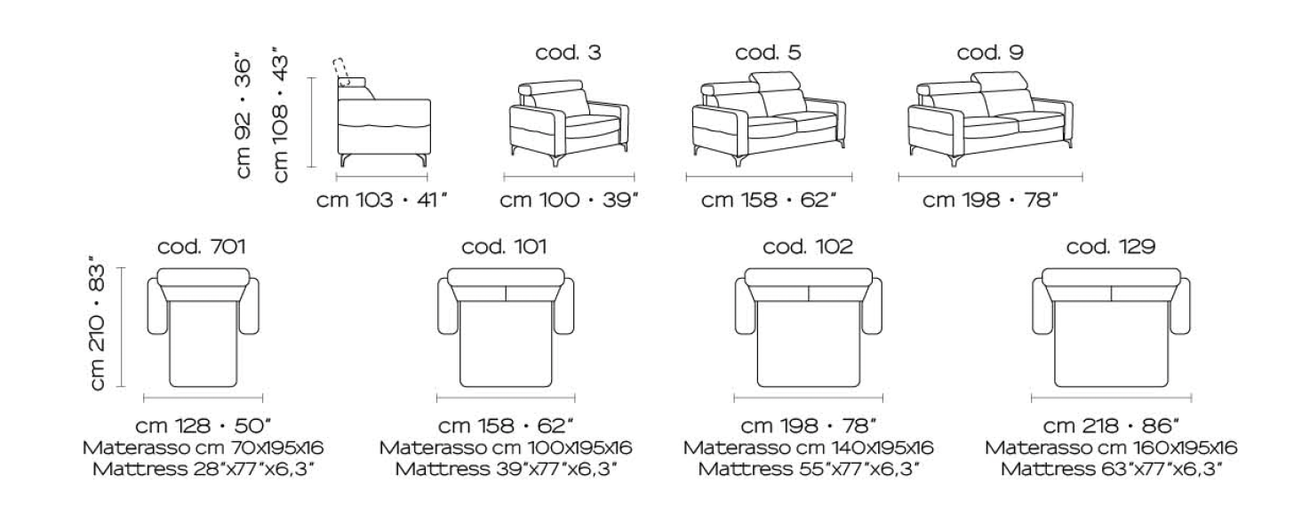 דגם "סיינה" תוצרת איטליה, בעלת ראשים מתכווננים המעניקים תמיכה מלאה לראש ,ידיות נשלפות ומזרן אורטופדי .הספה נפתחת למיטה ומרופדת בבד רחיץ ודוחה כתמים או בריפוד עור, איכותי ועמיד במיוחד.
